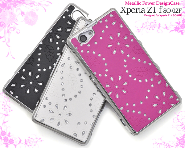 キュートな、Xperia Z1 f SO-02F用メタリックフラワーデザインケース。