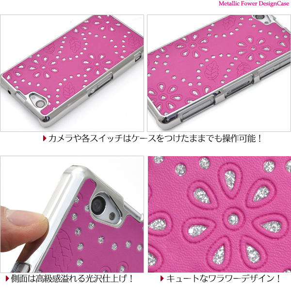キュートなXperia Z1 f SO-02F用メタリックフラワーデザインケース