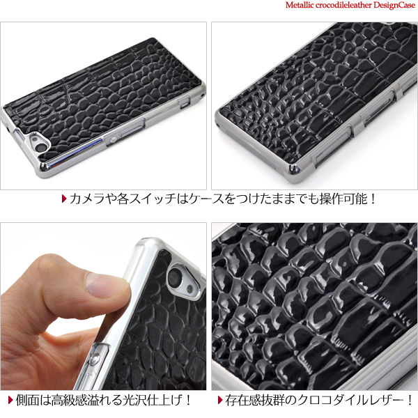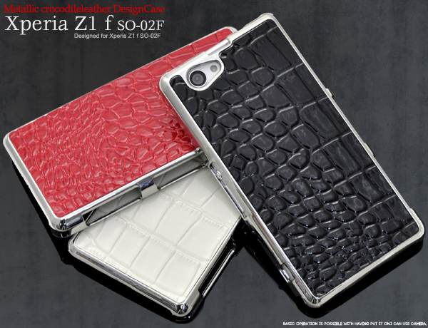高級感を漂わせる、Xperia Z1 f SO-02F用メタリッククロコダイルレザーデザインケース。