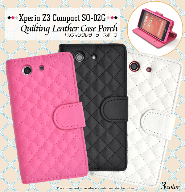 触り心地抜群のキルティングレザーを使用したオシャレなケースポーチです。 内部に備えられたソフトケースでしっかり固定し、 衝撃やキズ、埃などからXperia Z3 Compact SO-02Gをしっかりと守ります。 背面を折り返すとスタンドとして使用できるので、動画視聴に便利です。 ポーチの内側にはポケットが付いているので、カード類を入れるのに便利! ケースを装着したまま、充電やヘッドフォンジャックの接続、カメラや各種ボタンの操作も可能です。 ブラック、ビビットピンク、ホワイトの3色からお選びください。 ※Xperia Z3 Compact SO-02Gは付属しません。ライセンス商品ではありません。 ※ケースをつけたまま撮影できますが、フラッシュ撮影時にケースの色が移り込むことがあります。 |