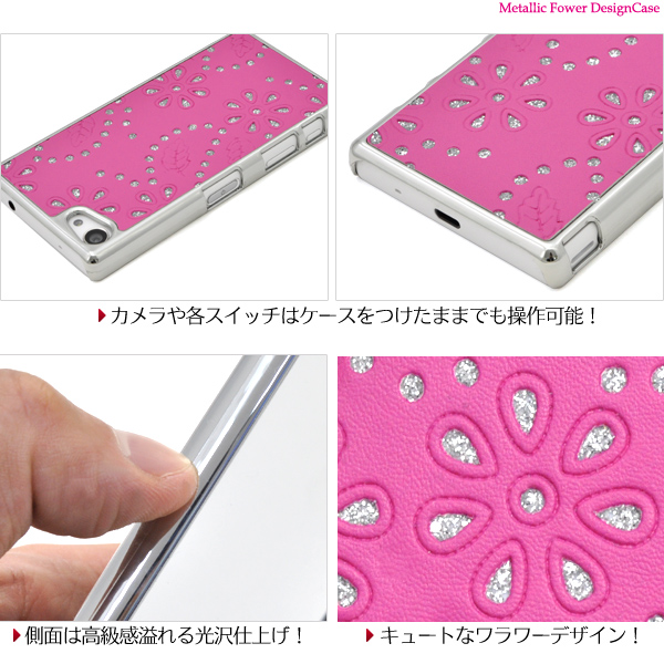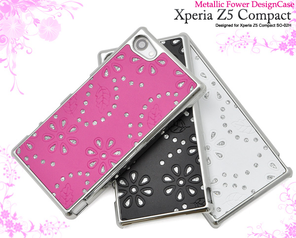 Xperia Z5 Compact SO-02H用メタリックフラワーデザインケース。