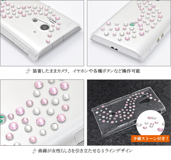| 注意 | ※Xperia acro HD SO-03Dは付属しません。 ※ライセンス商品ではありません。 ※衝撃を与えると、ラインストーンが取れる場合があります。 |