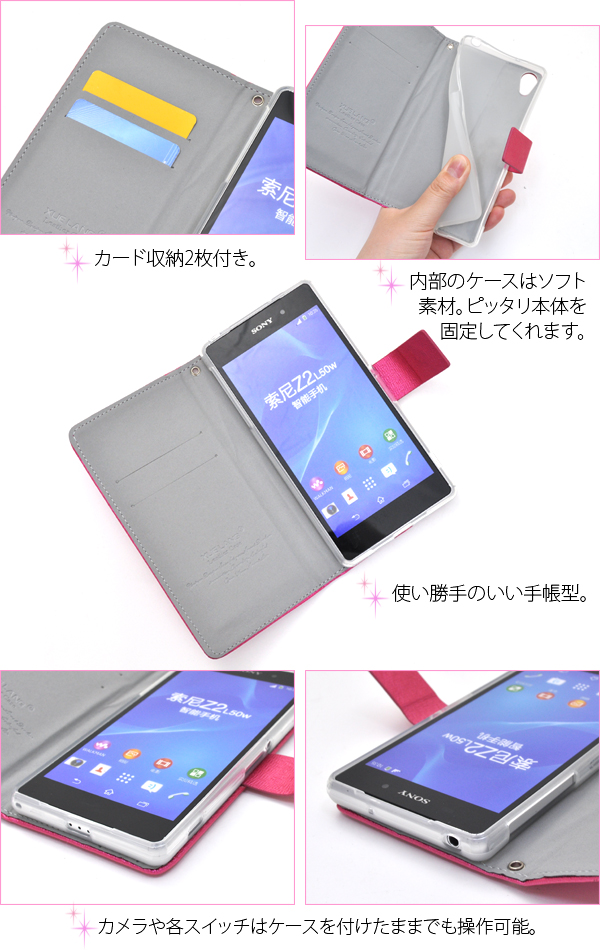 さわり心地のいいキルティングのケースポーチ。 内側にはカード収納がついているので定期やICカードなどを入れてお使いいただくと便利です♪ 開閉はマグネット式で、使い勝手の良い手帳型です。またストラップホールもついています。 衝撃やキズなどからXperia Z2 SO-03F用を守るのはもちもん、 カメラ、イヤホンや各種ボタンなどをケースに入れたまま操作可能です。 カラーはビビッドピンク、ピンク、パープルの3色からお選びいただけます。 ※Xperia Z2 SO-03F用は付属しません。 ※ライセンス商品ではありません。 |