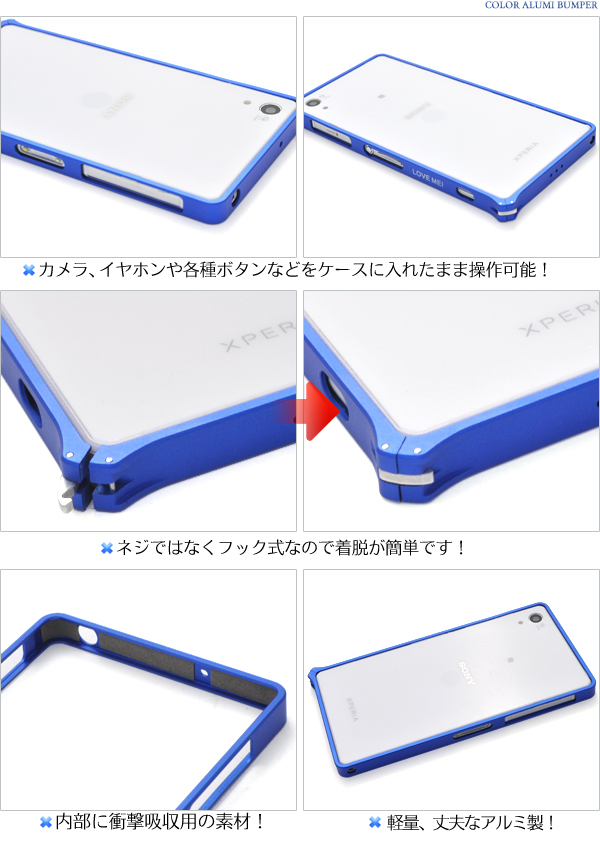 軽量&頑丈なXperia Z2 SO-03F用アルミカラーバンパーケース