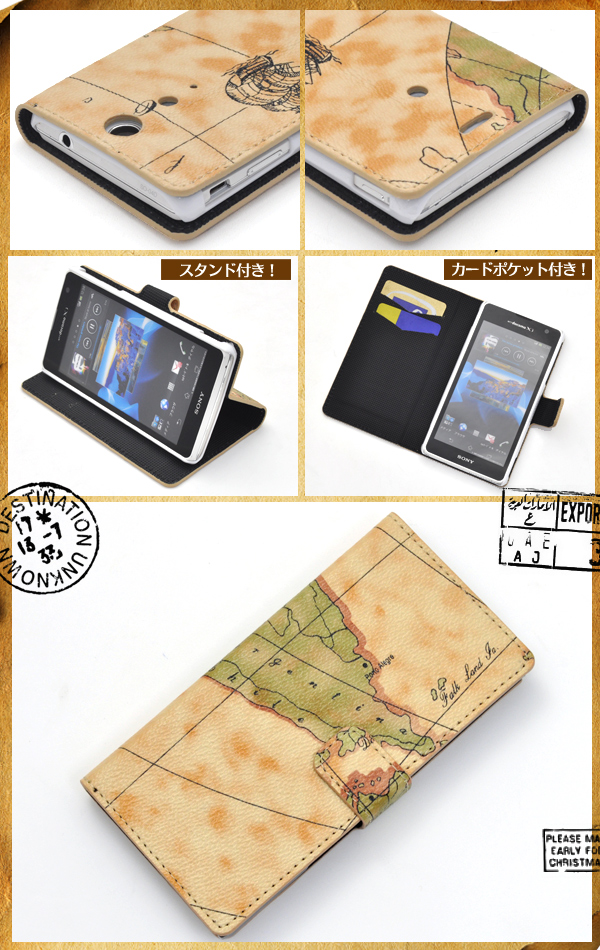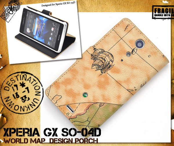 レトロな世界地図デザインがオシャレな、Xperia GX SO-04D用ケースポーチ!