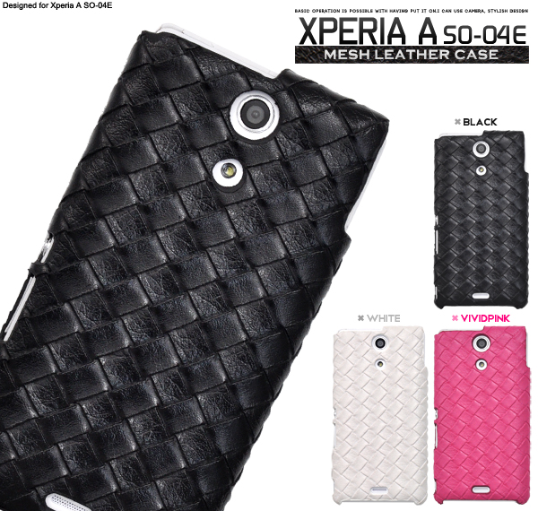 スタイリッシュなメッシュレザーデザインのXperia A SO-04E用ケース 衝撃やキズ、埃などからしっかりとXperia A SO-04Eを守ります。 カメラはもちろん、イヤホンや各種ボタンなどをケースに入れたまま操作可能です! ブラック、ホワイト、ビビットピンクの3色展開です。 ※ライセンス商品ではありません。※Xperia A SO-04Eは付属しません。 ※卓上ホルダ充電には対応していません。 |