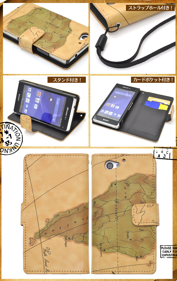レトロな世界地図デザインがオシャレな、Xperia A2 SO-04F用ケースポーチ!