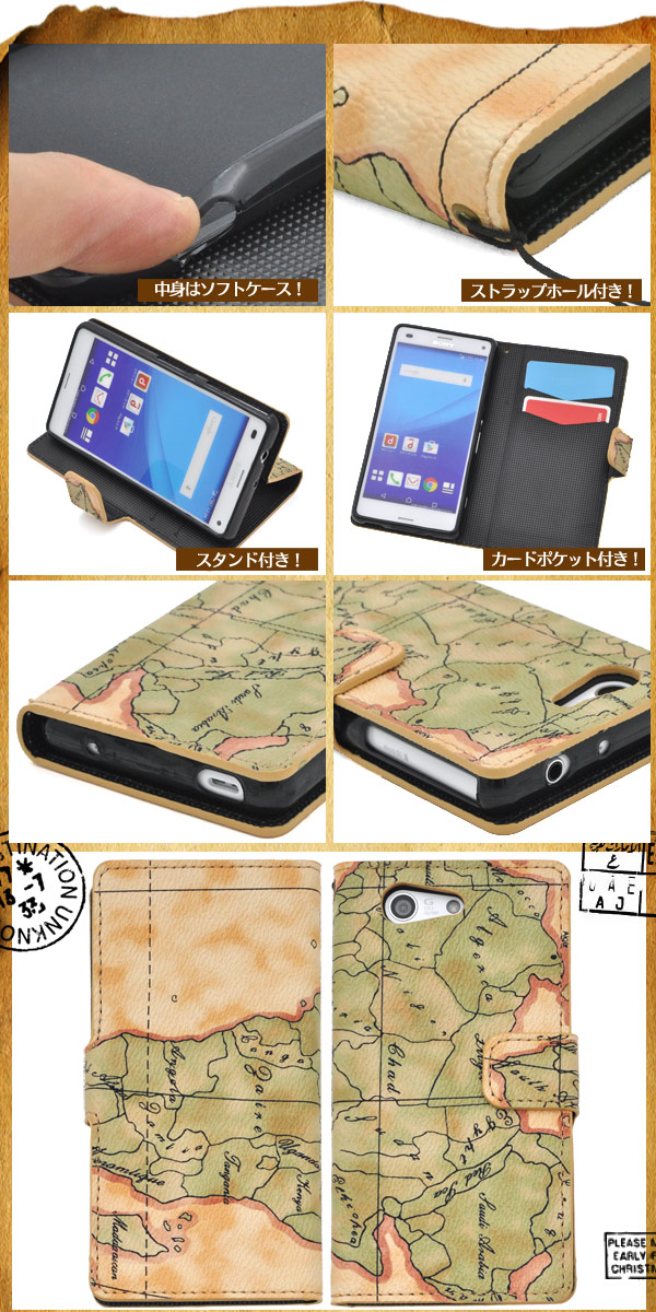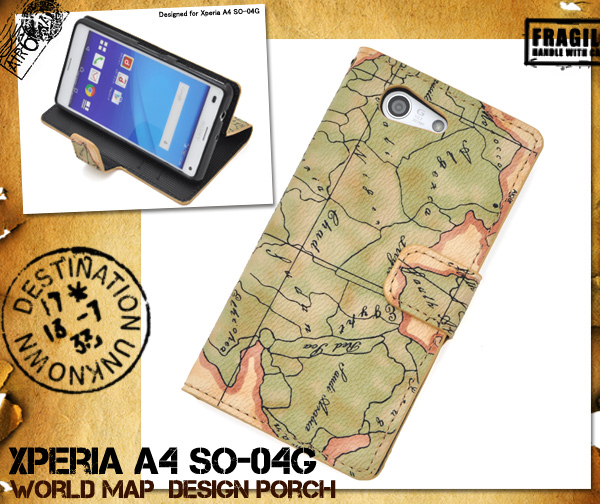 スタイリッシュな地図デザイン!Xperia A4 SO-04G用ワールドデザインケースポーチ