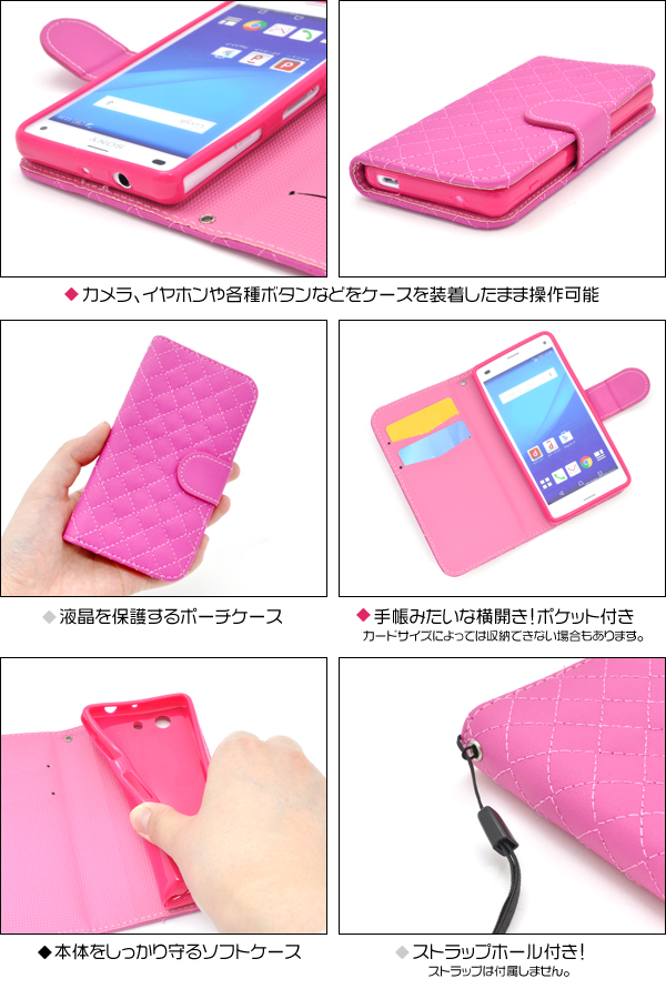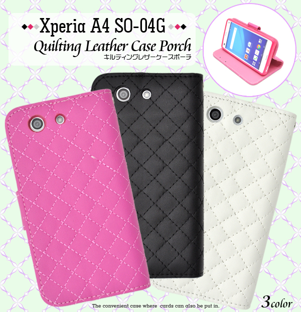 触り心地抜群のキルティングレザーを使用したオシャレなケースポーチです。 内部に備えられたソフトケースでしっかり固定し、 衝撃やキズ、埃などからXperia A4 SO-04Gをしっかりと守ります。 背面を折り返すとスタンドとして使用できるので、動画視聴に便利です。 ポーチの内側にはポケットが付いているので、カード類を入れるのに便利! ケースを装着したまま、充電やヘッドフォンジャックの接続、カメラや各種ボタンの操作も可能です。 ブラック、ビビットピンク、ホワイトの3色からお選びください。 ※Xperia A4 SO-04Gは付属しません。ライセンス商品ではありません。 ※ケースをつけたまま撮影できますが、フラッシュ撮影時にケースの色が移り込むことがあります。 |