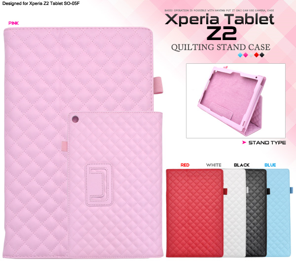 | ■動画視聴に最適!Xperia Z2 Tablet SO-05F用キルティングレザースタンドケース |