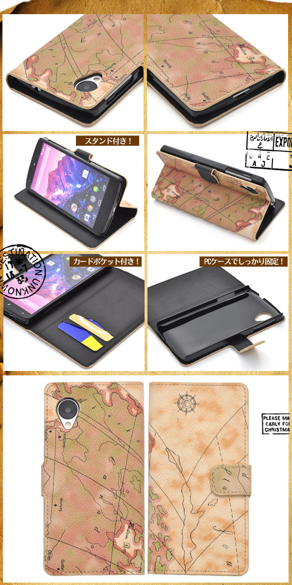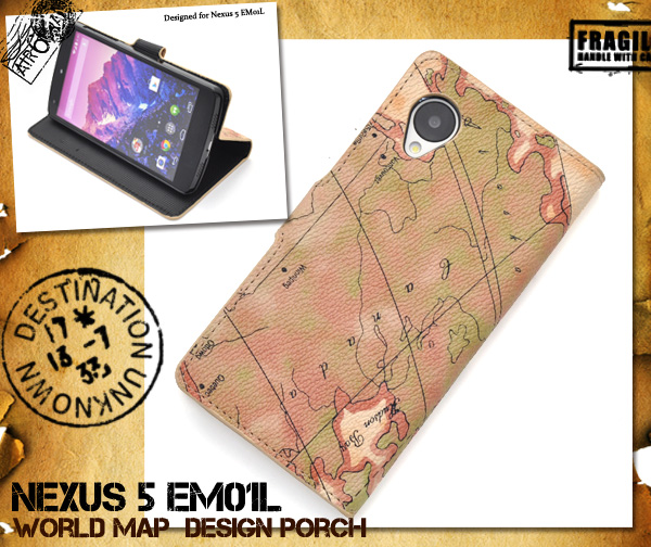 レトロな世界地図デザインがオシャレな、Nexus 5 EM01L用ケースポーチ!