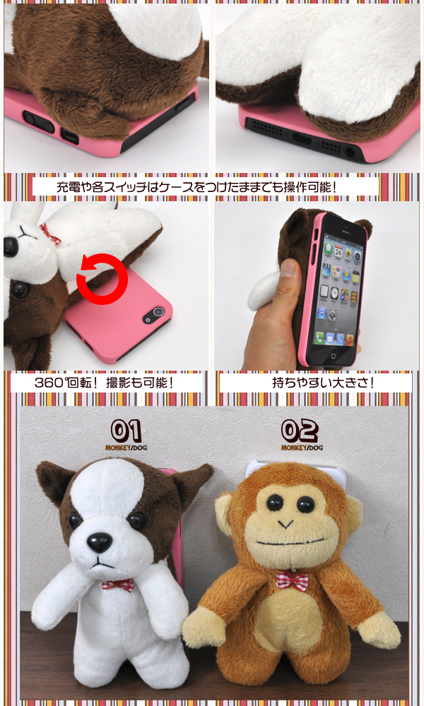 背面に可愛いぬいぐるみが付いたiPhone 5用ぬいぐるみケース!