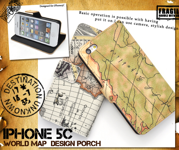 レトロな世界地図デザインがオシャレな、iPhone 5c用ケースポーチ!
