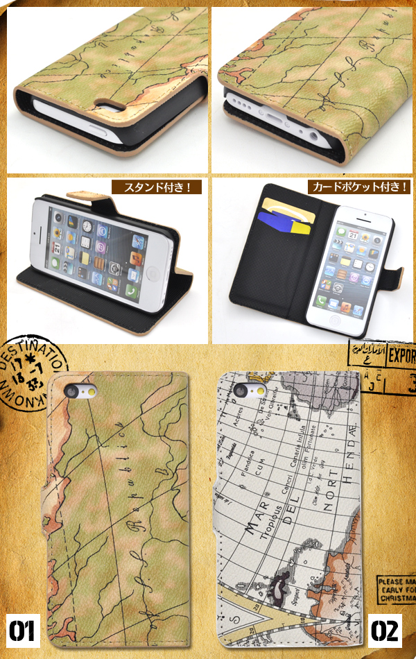 スタイリッシュな地図デザイン!iPhone 5c用ワールドデザインケースポーチ