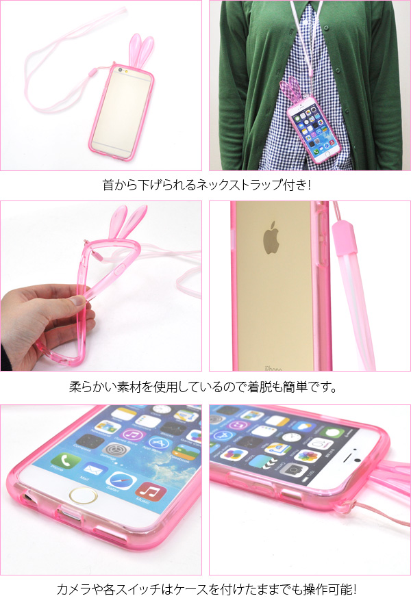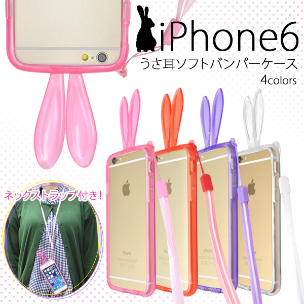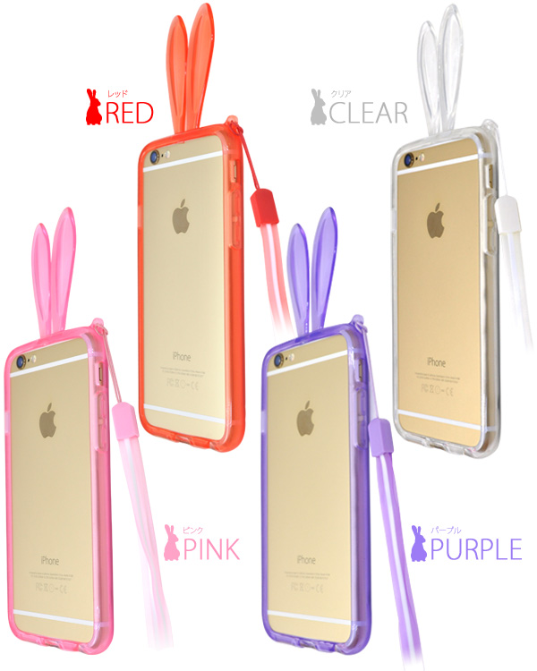 大きな耳がかわいいiPhone6用のうさ耳ソフトバンパーケースです。