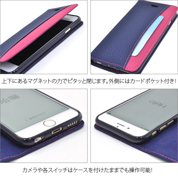 衝撃やキズなどからiPhone6を守ります。 また、内部にはソフトケースを備え、本体をしっかりと固定します。 背面を折り返すとスタンドとして使用できるので、動画視聴に便利です。 横開きタイプなので、手帳のように使うことができます。 また、外側と内側にはカードポケットが付いています。 カラーはブルー、レッド、ホワイト、ピンクの4色からお選びいただけます。 ※iPhone6は付属しません。 ※ライセンス商品ではありません。 |