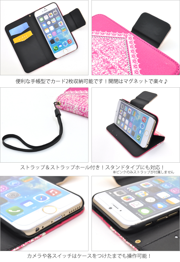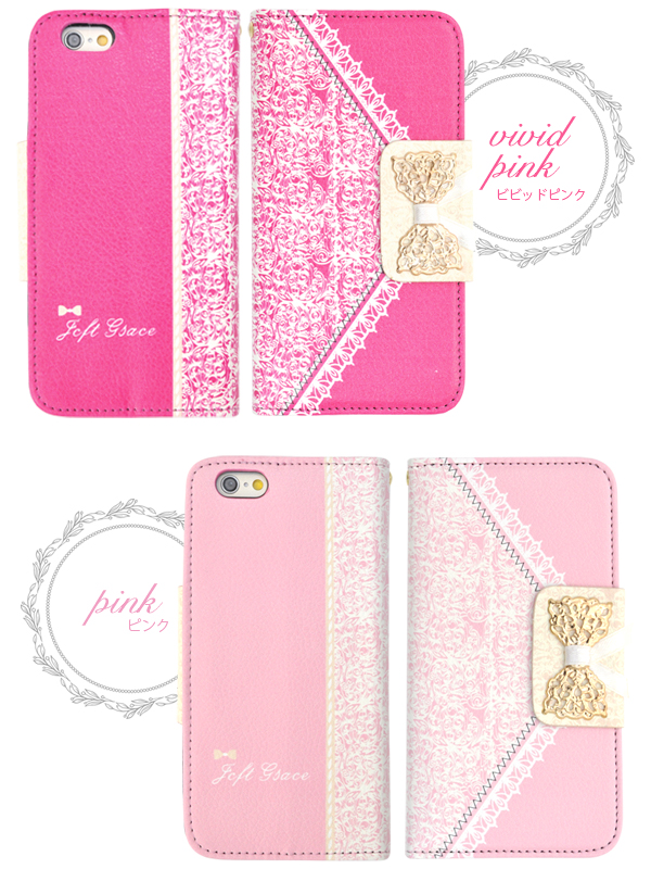 レースとリボンがかわいい、女性的なケースポーチです。 衝撃やキズなどからiPhone6を守るのはもちろん、 カメラ、イヤホンや各種ボタンなどをケースに入れたまま操作可能です。 横開きタイプなので、手帳のように使うことができます。 内側に2つのカードポケット、ストラップとストラップホールが付いています。 カラーはビビッドピンク、ピンク、グリーンの3色からお選びいただけます。 ※iPhone6は付属しません。 ※ライセンス商品ではありません。 ※レース部分はプリントです。 |