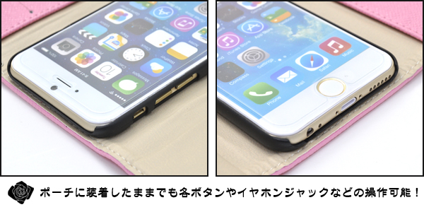 外側のチャックを開けるとポーチ替わりになって便利! アクセサリーなどを入れておけば無くす心配もありません。 内側にはカード収納ポケットが2つとサイドポケットが付いています。 また、ストラップホールとストラップ付きです。 もちろん、ポーチを装着したまま充電やヘッドフォンジャックなどの接続、各種ボタンの操作も可能です。 カラーはブラック、ホワイト、オレンジ、ピンク、ベージュ、レッドの6色からお選びいただけます。 ※iPhone6は付属しません。 ※ライセンス商品ではありません。 |