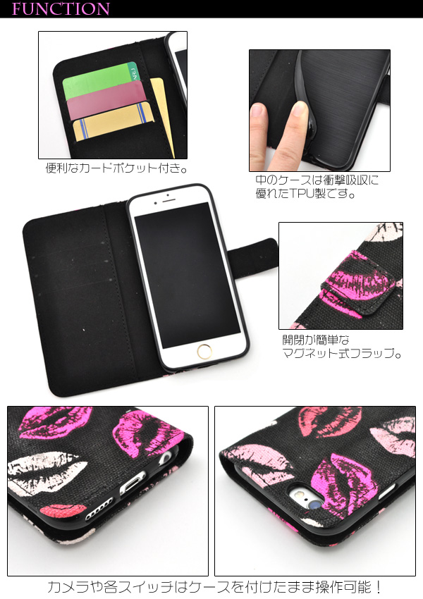 内側にカードポケットとサイドポケット付きでカードの収納に便利です! 開閉はマグネット式で、使い勝手の良い手帳型です。 衝撃やキズなどからiPhone6/iPhone6sを守るのはもちろん、 カメラ、イヤホンや各種ボタンなどをケースに入れたまま操作可能です。 ※iPhone6/iPhone6sは付属しません。 ※ライセンス商品ではありません。 |