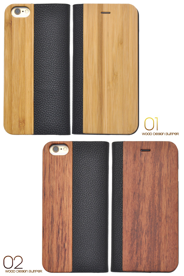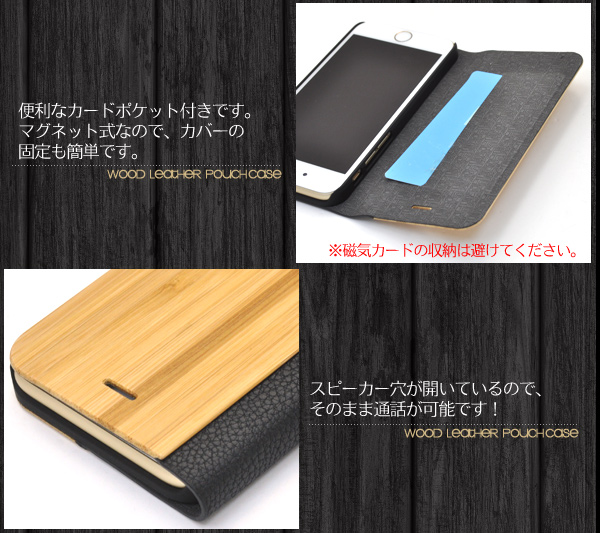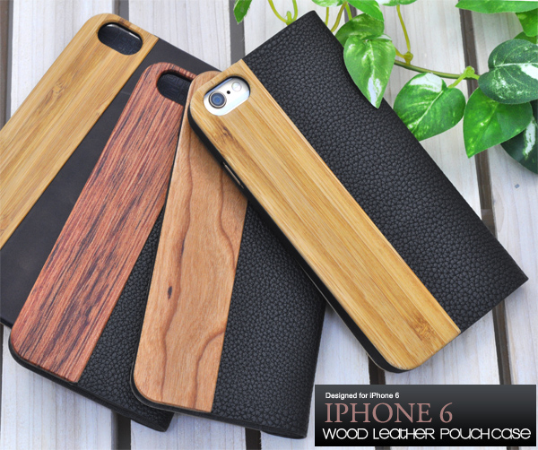 温かみのある本物の木を使用した iPhone 6ウッドレザーポーチケース。