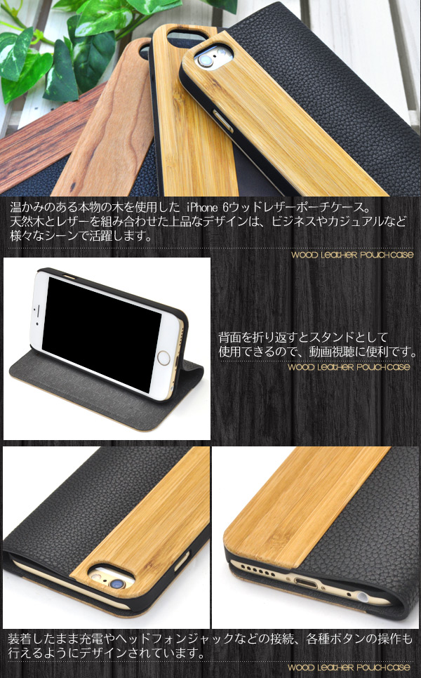 温かみのある本物の木を使用した iPhone 6ウッドレザーポーチケース
