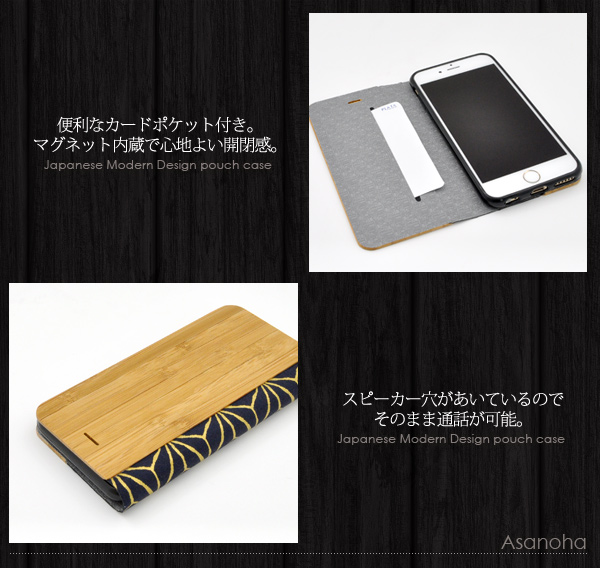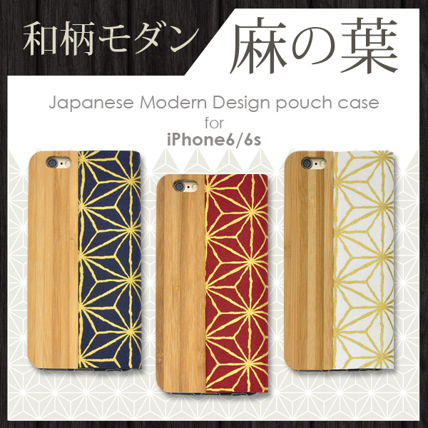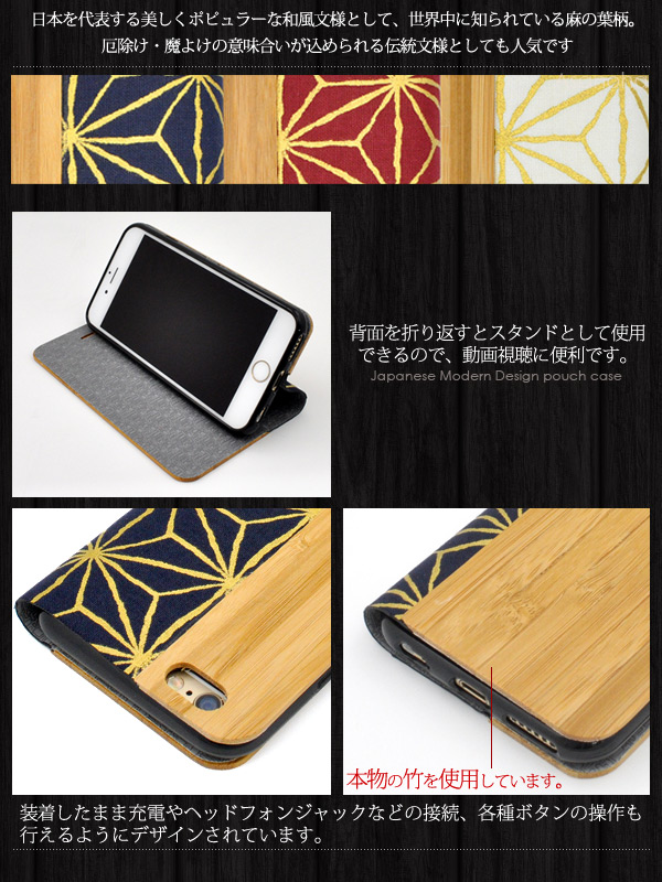 本物の竹を使用した iPhone 6/6s和柄モダンポーチケース 麻の葉柄