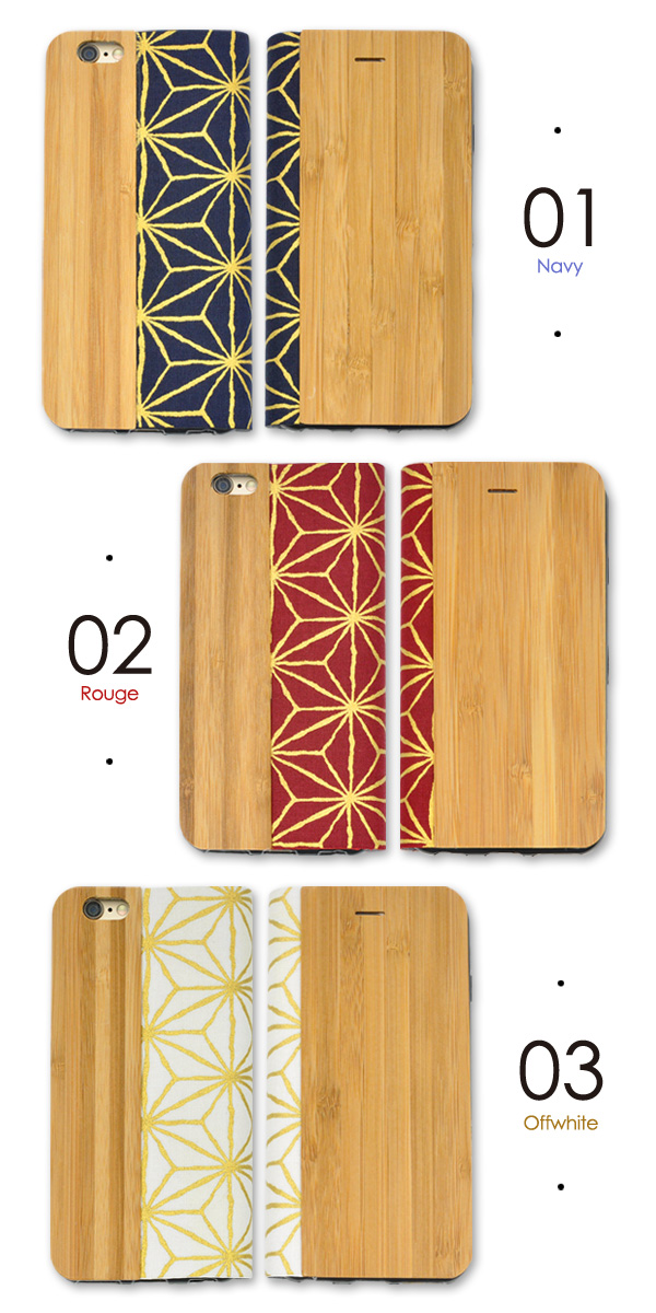 手に馴染む綿と本物の竹を使用した手帳タイプケース。