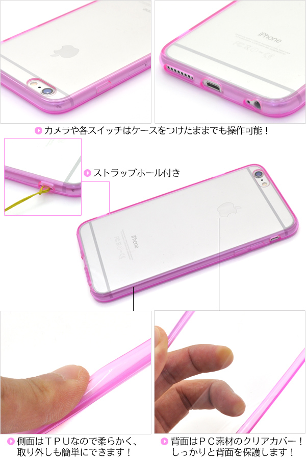 衝撃やキズ、埃などからしっかりとiPhone 6 Plusを守ります。 側面はTPU素材なので柔らかく、取り外しも簡単! また、背面はPC素材なので、しっかりと背面を保護します。 もちろん、装着したまま充電や各種ボタンの操作も行えるようにデザインされています。 落下防止に最適なストラップホール付きです。 ※ライセンス商品ではありません。 ※iPhone 6 Plusは付属しません。※ストラップは付属しません。 |