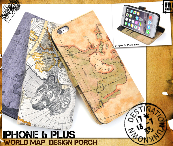 レトロな世界地図デザインがオシャレな、iPhone 6 Plus用ケースポーチ!