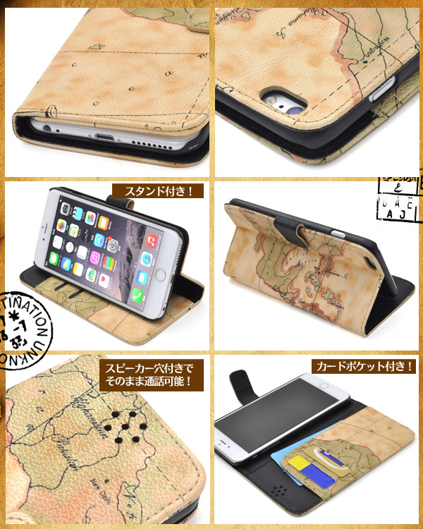 スタイリッシュな地図デザイン!iPhone 6 Plus用ワールドデザインケースポーチ