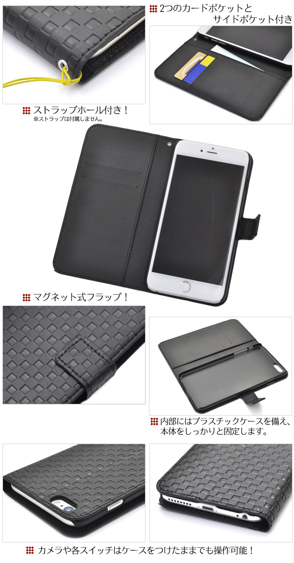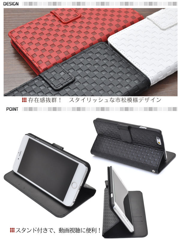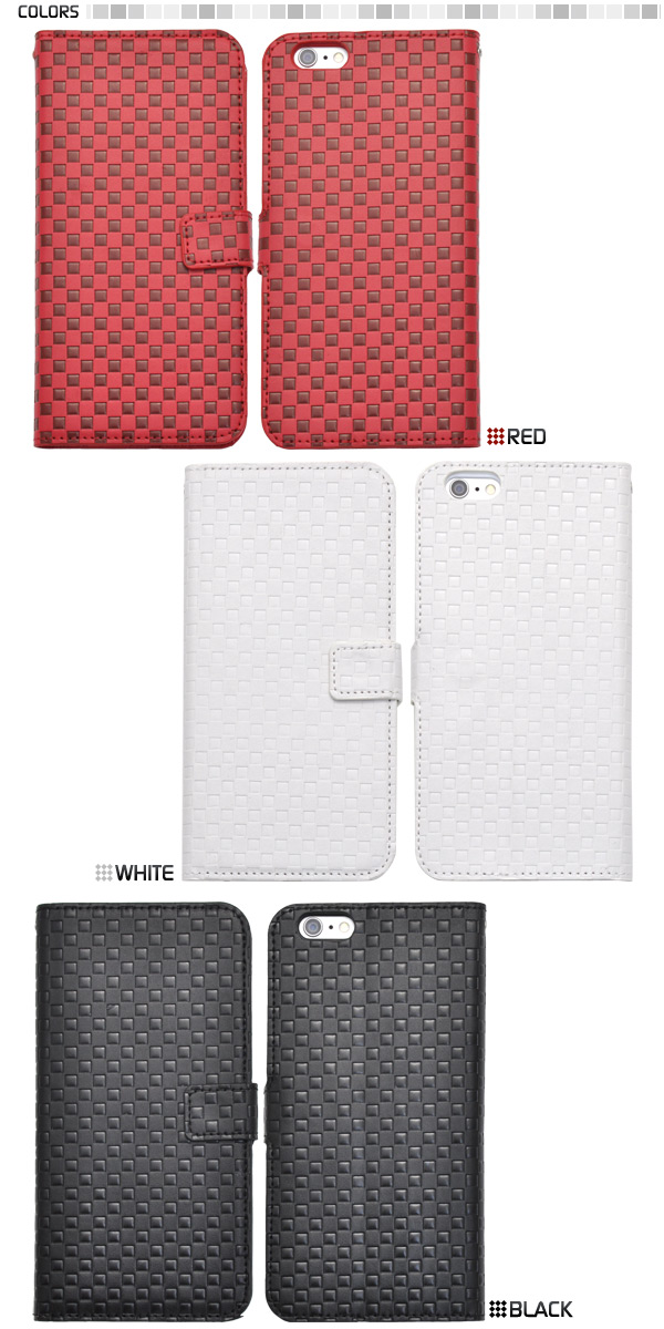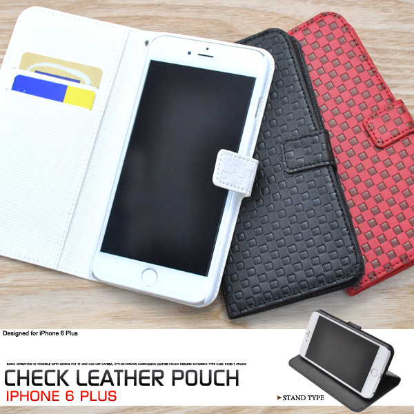 市松模様レザーデザインのiPhone 6 Plus用スタンドケースポーチ。