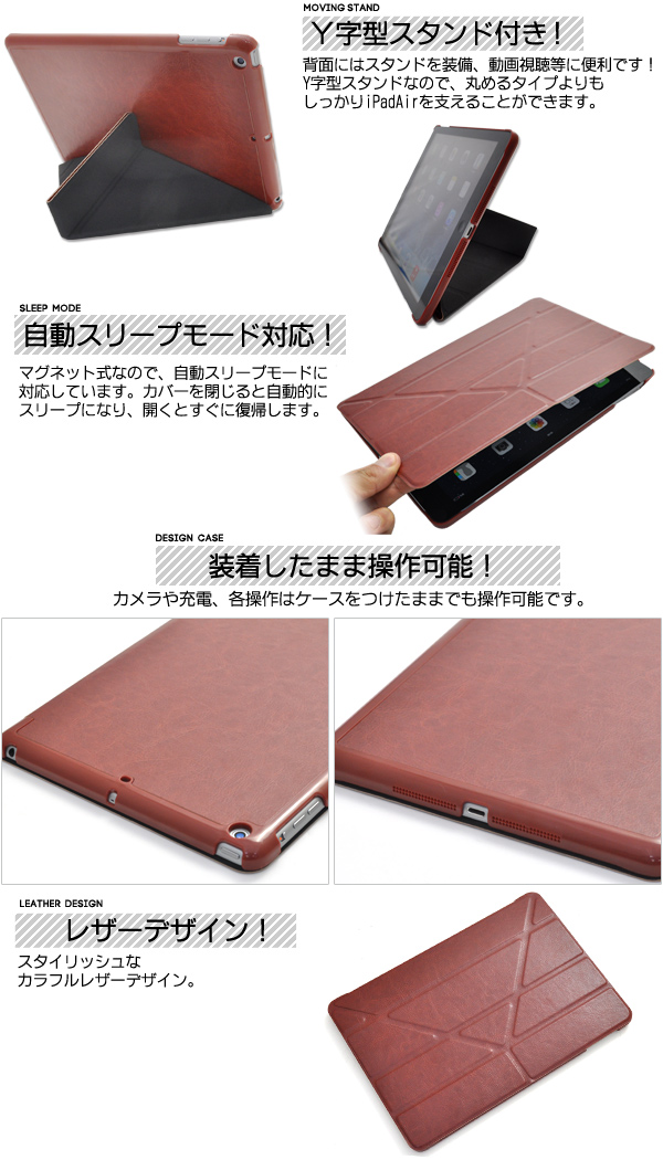 しっかり支えるY字型スタンド付き!iPad Air用レザーデザインケース(Y字スタンドタイプ)