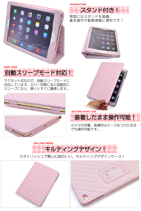 スタンド付き!iPad Air 2用キルティングデザインケース
