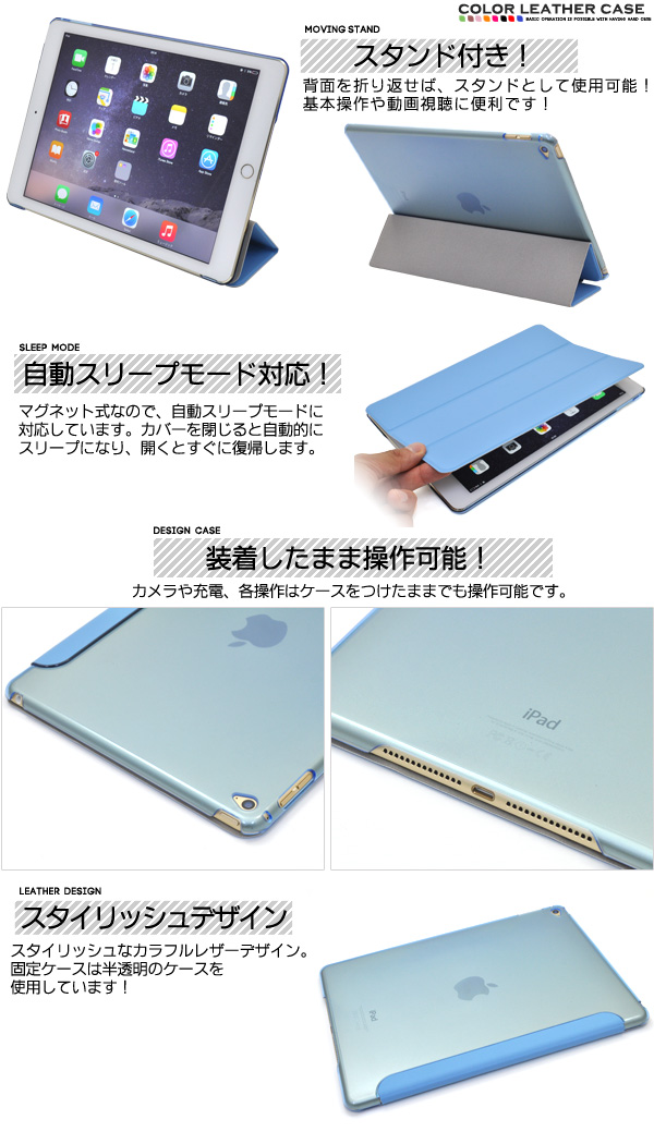 スタンド付き!カラフルなiPad Air 2用カラーレザーデザインケース