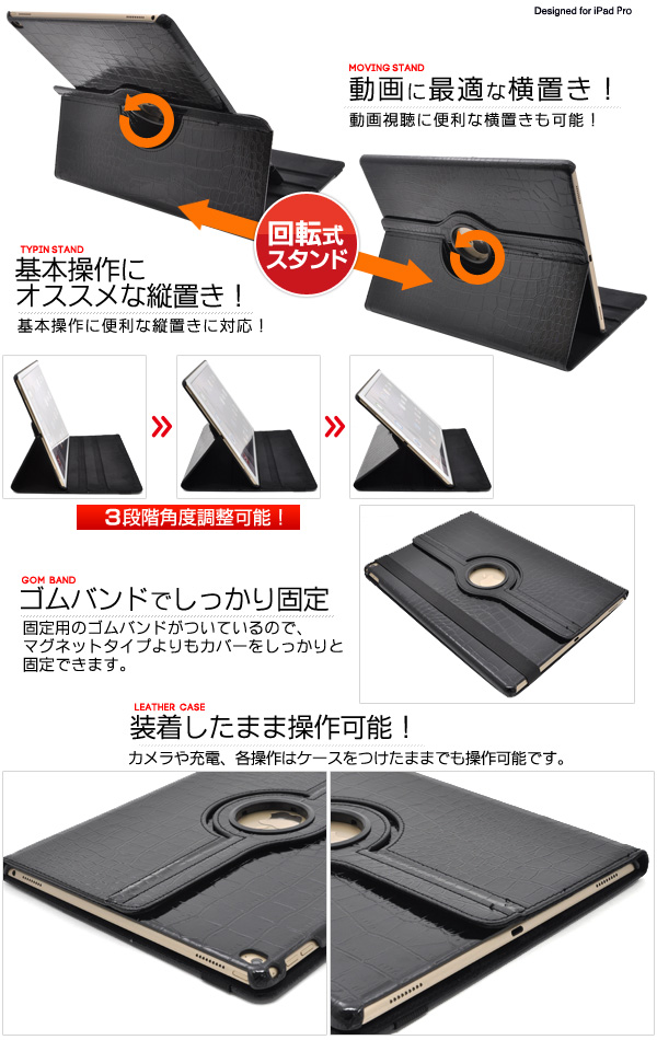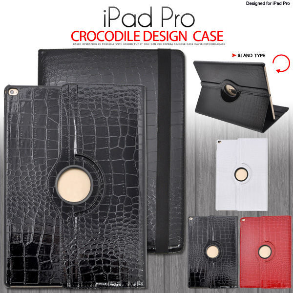 回転式スタンド付き!iPad Pro用クロコダイルレザーデザインケース
