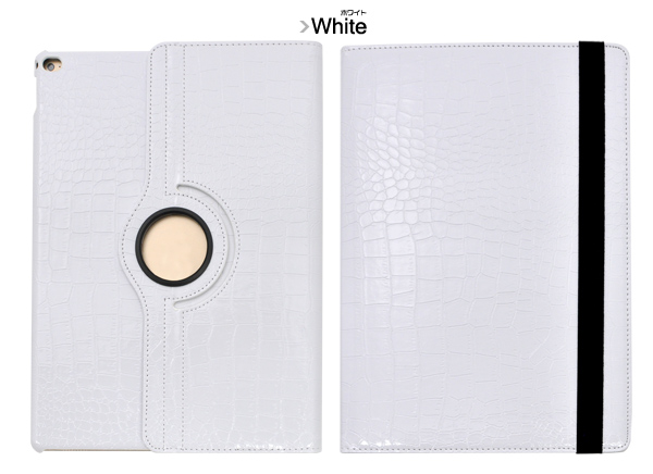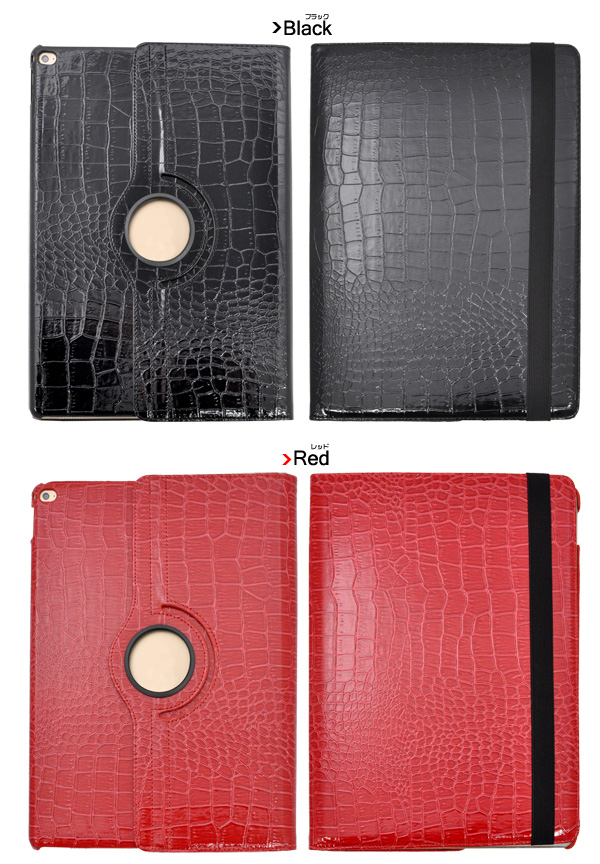 高級感溢れるクロコダイルレザー調のiPad Pro用ケース。 iPad Proのボディだけでなく、タッチパネルも保護する手帳タイプです。 カメラや充電、各操作はケースをつけたままでも操作可能です。
