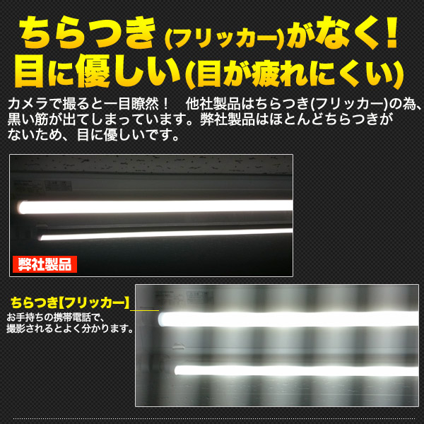 ほとんどちらつきがないため、目に優しい(目が疲れにくい)です。
