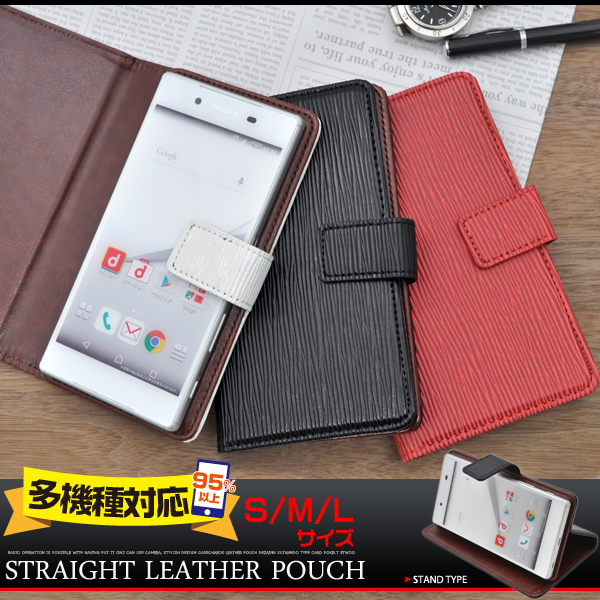 各種スマホ対応マルチタイプのストレートレザーデザインケースポーチ S/M/Lサイズ |