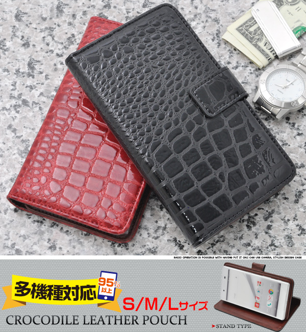 各種スマホ対応マルチタイプのクロコダイルレザーデザインケースポーチ S/M/Lサイズ |