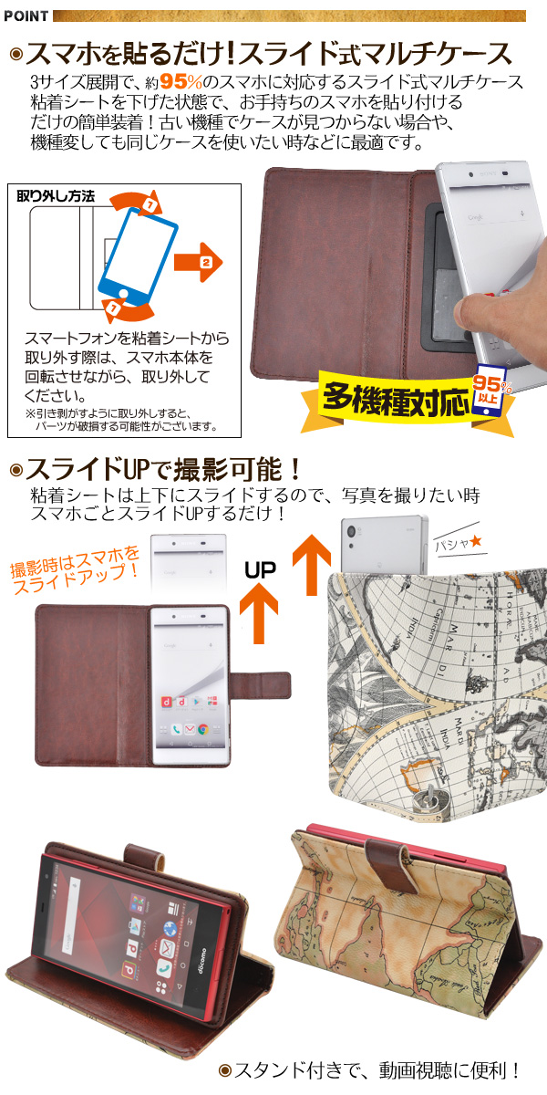 各種スマホ対応マルチタイプのワールドデザインレザーケースポーチ S/M/Lサイズ |
