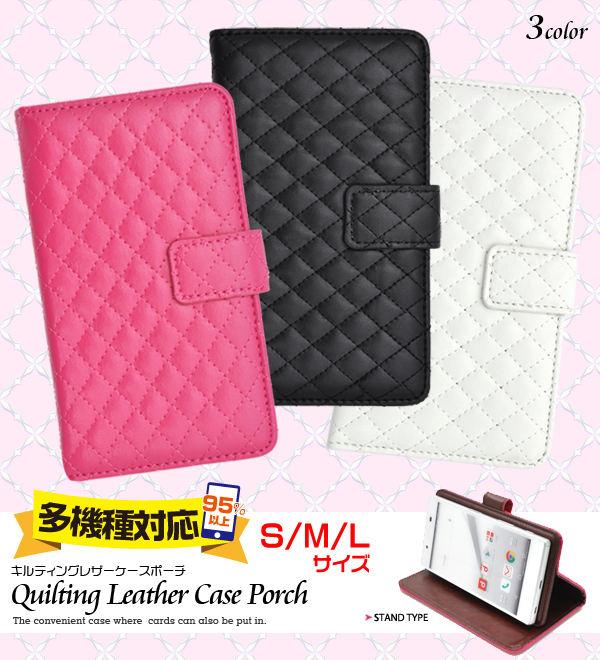 各種スマホ対応マルチタイプのキルティングレザーケースポーチS/M/Lサイズ |