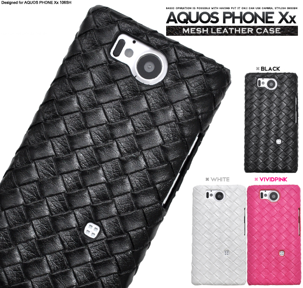 スタイリッシュなメッシュレザーデザインのAQUOS PHONE Xx 106SH用ケース 衝撃やキズ、埃などからしっかりとAQUOS PHONE Xx 106SHを守ります。 カメラはもちろん、イヤホンや各種ボタンなどをケースに入れたまま操作可能です! ブラック、ホワイト、ビビットピンクの3色展開です。 ※ライセンス商品ではありません。 ※AQUOS PHONE Xx 106SHは付属しません。 |