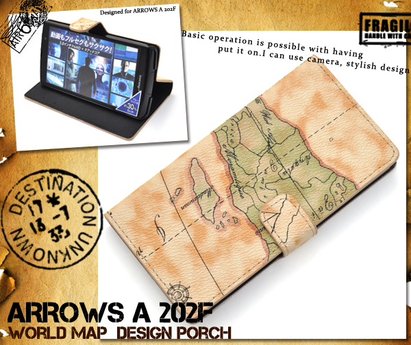 スタイリッシュな地図デザイン!ARROWS A 202F用ワールドデザインケースポーチ