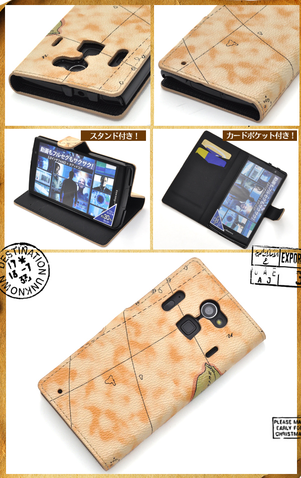 レトロな世界地図デザインがオシャレな、ARROWS A 202F用ケースポーチ!