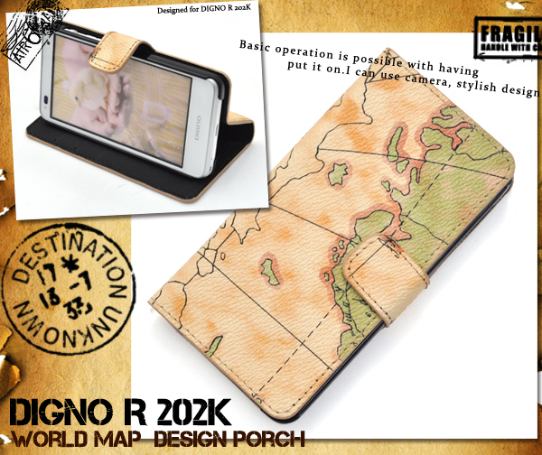 スタイリッシュな地図デザイン!DIGNO R 202K用ワールドデザインケースポーチ