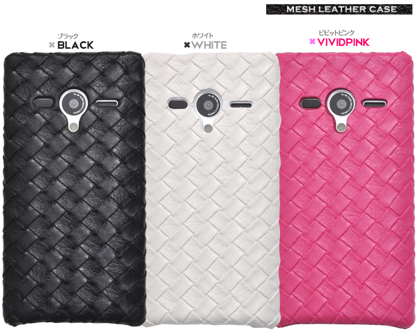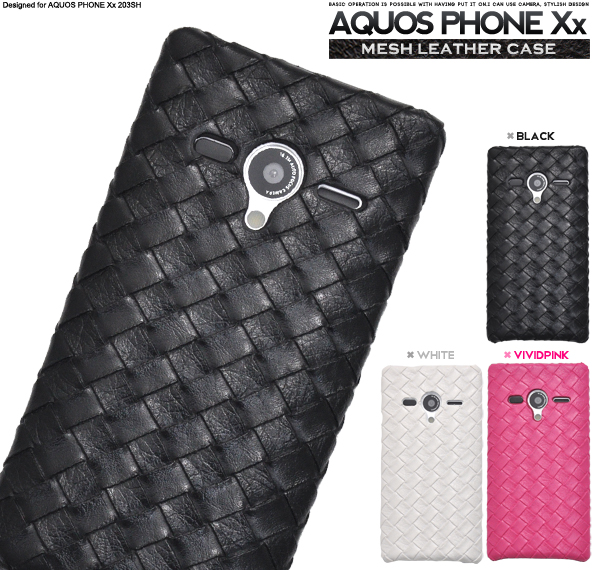 スタイリッシュなメッシュレザーデザインのAQUOS PHONE Xx 203SH用ケース 衝撃やキズ、埃などからしっかりとAQUOS PHONE Xx 203SHを守ります。 カメラはもちろん、イヤホンや各種ボタンなどをケースに入れたまま操作可能です! ブラック、ホワイト、ビビットピンクの3色展開です。 ※ライセンス商品ではありません。 ※AQUOS PHONE Xx 203SHは付属しません。 |