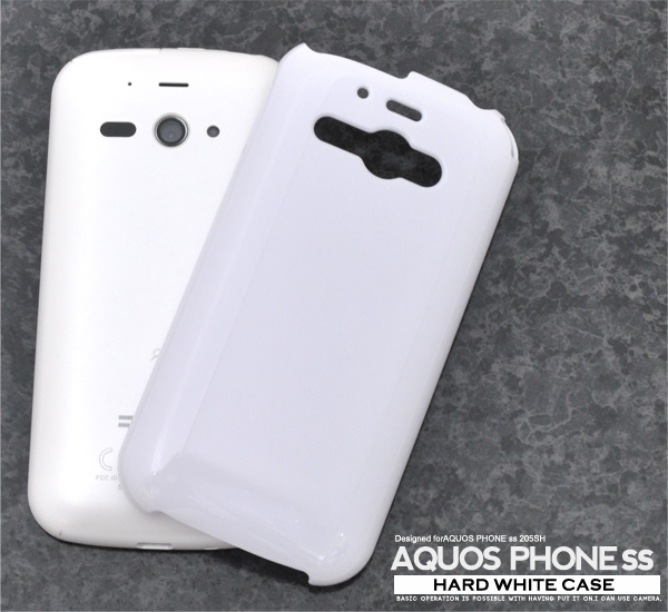 シンプルなホワイトの、 AQUOS PHONE ss 205SH専用ハードホワイトケース。