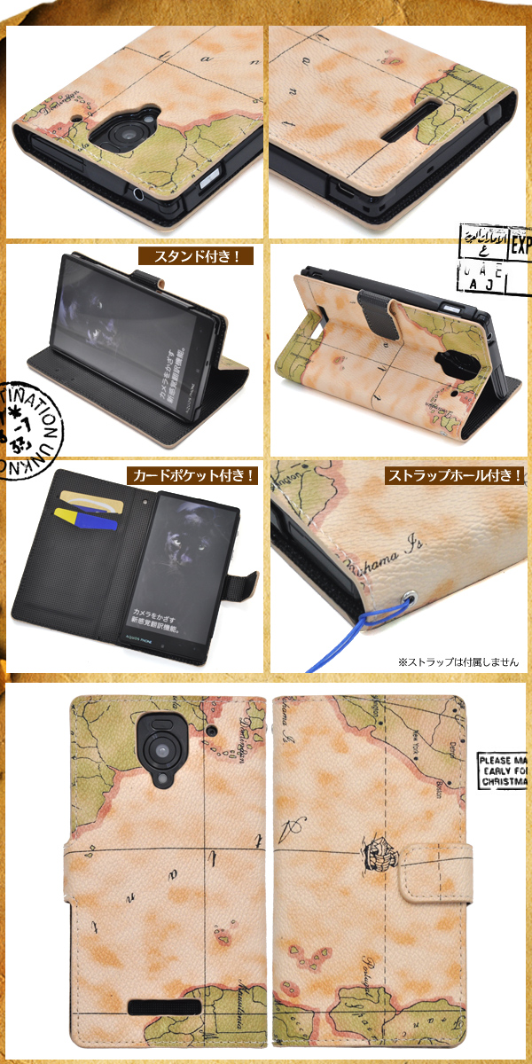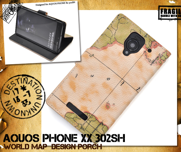 レトロな世界地図デザインがオシャレな、AQUOS PHONE Xx 302SH用ケースポーチ!