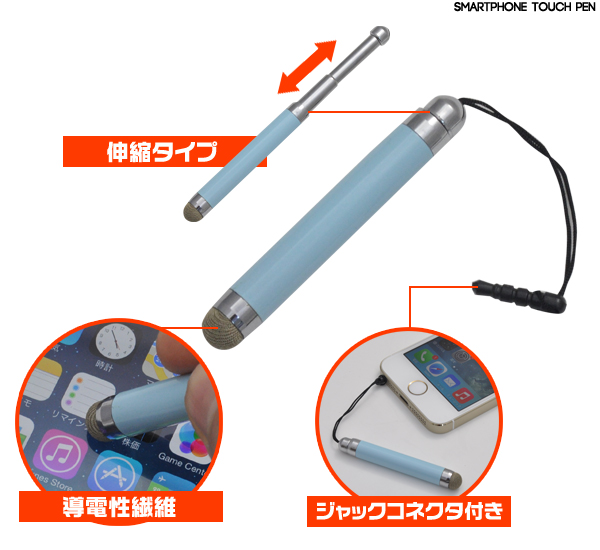 便利なジャックコネクタ付き!伸縮タイプスマートフォン&タブレットPC用タッチペン!