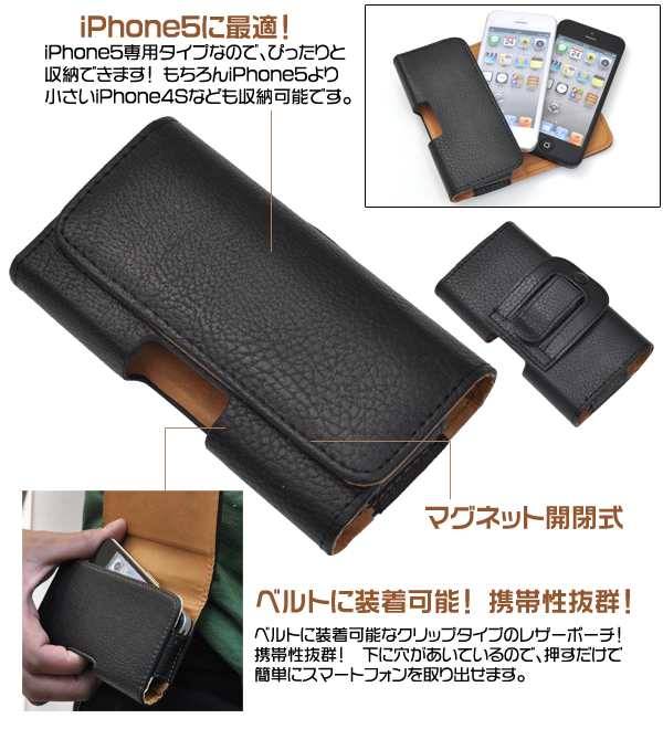 ベルトに装着可能! iPhone5用横型レザーベルトケース!